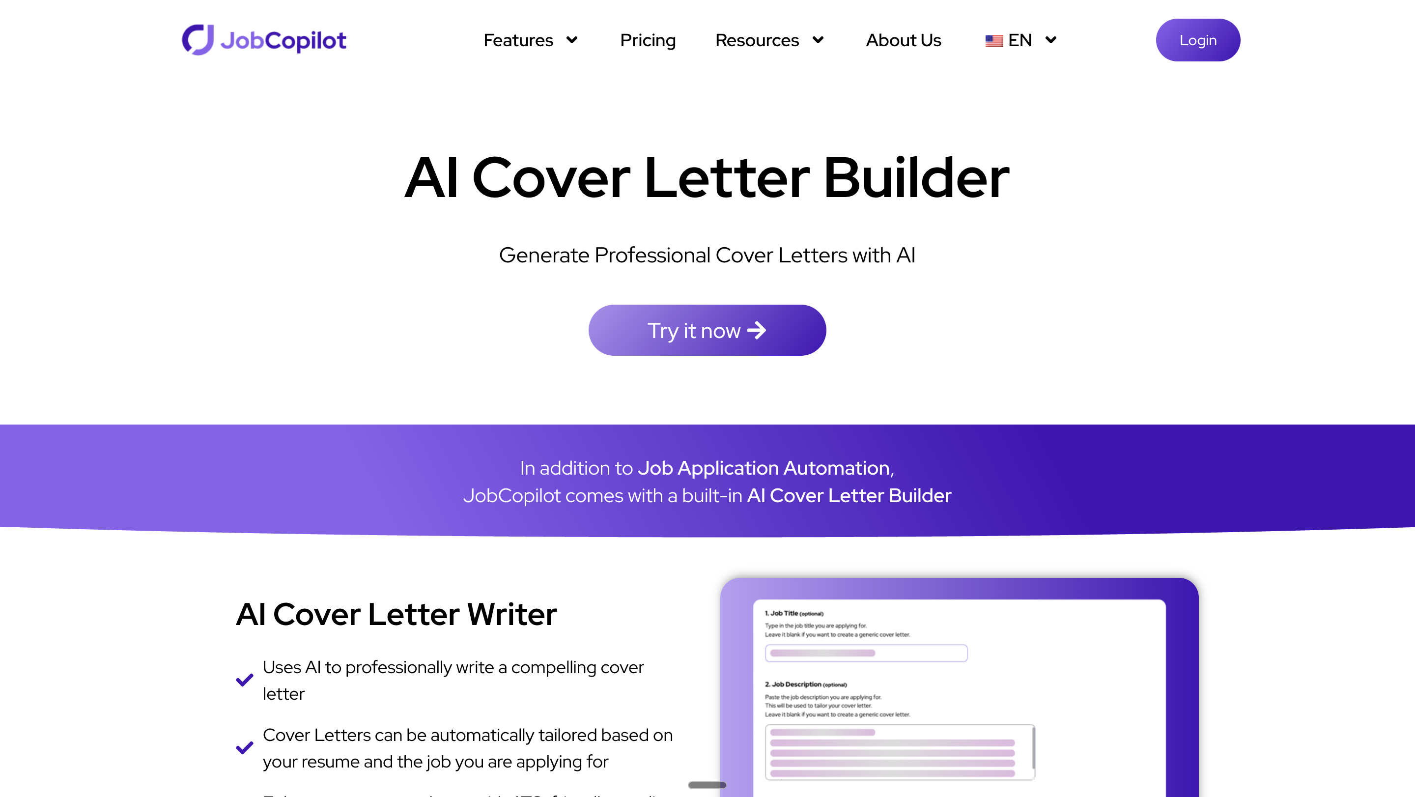 Cover Letter Copilot is purpose-built for cover letters, not a resume add-on. It’s perfect for job seekers who want high-quality, tailored letters quickly.