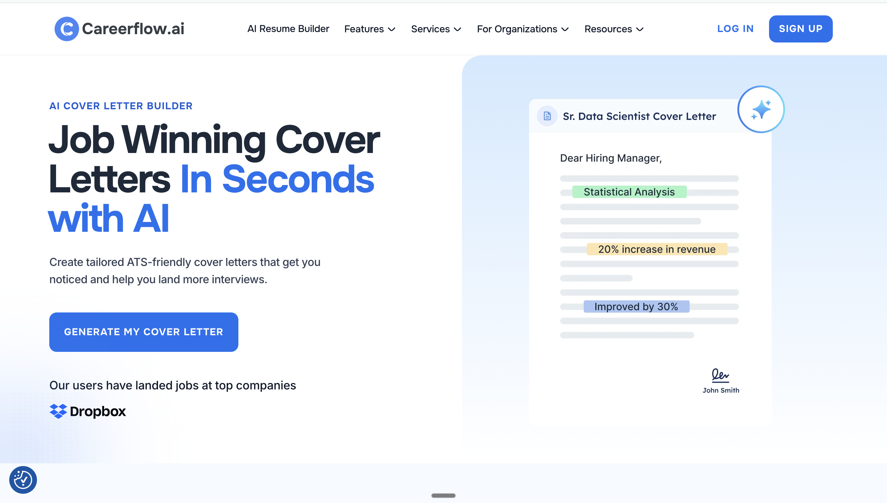 Careerflow.ai is more than just a writing tool — it’s a job application assistant. Ideal for users who want to manage multiple applications efficiently while generating letters on the go.