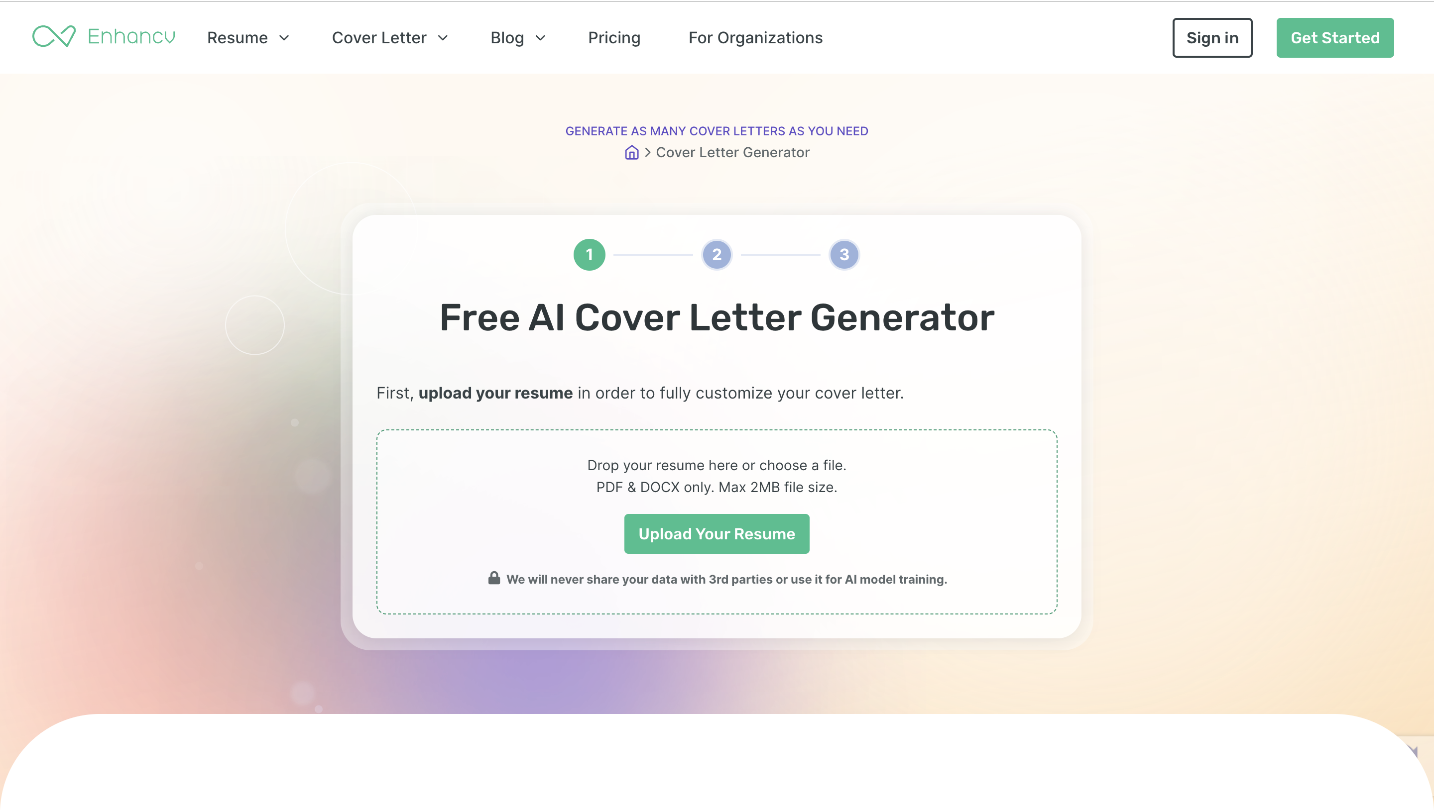 Step 1: Go to the Enhancv Cover Letter Generator and Upload Your Resume.