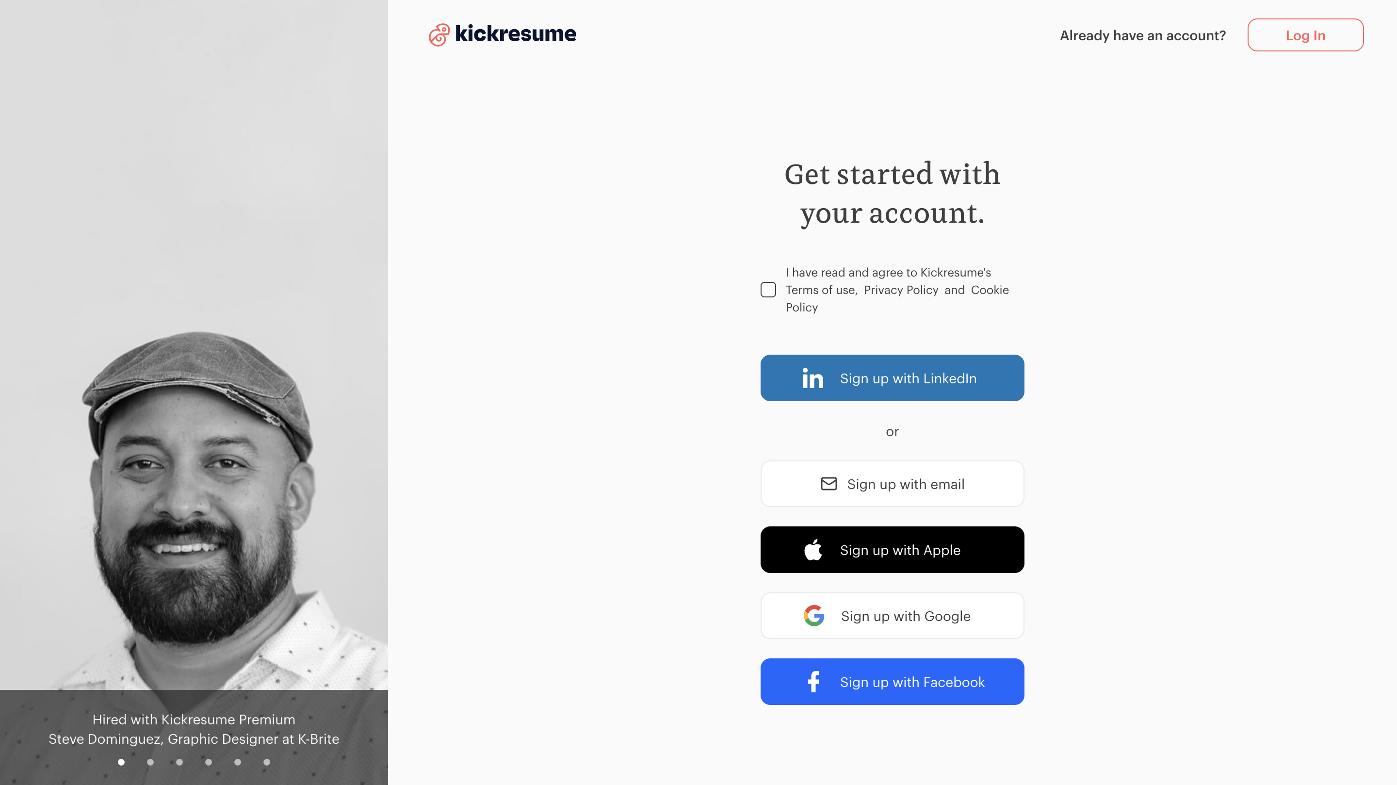 Step 2: Sign up with Google, LinkedIn, Facebook, or email to create your account.